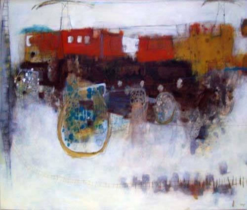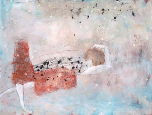 Colores pálidos y nacarados formando transparencias describen un ambiente plácido y subyugador que puede verse alterado de repente por manchas de colores vivos y perturbadores que irrumpen desde lo real.