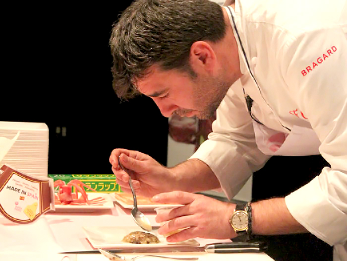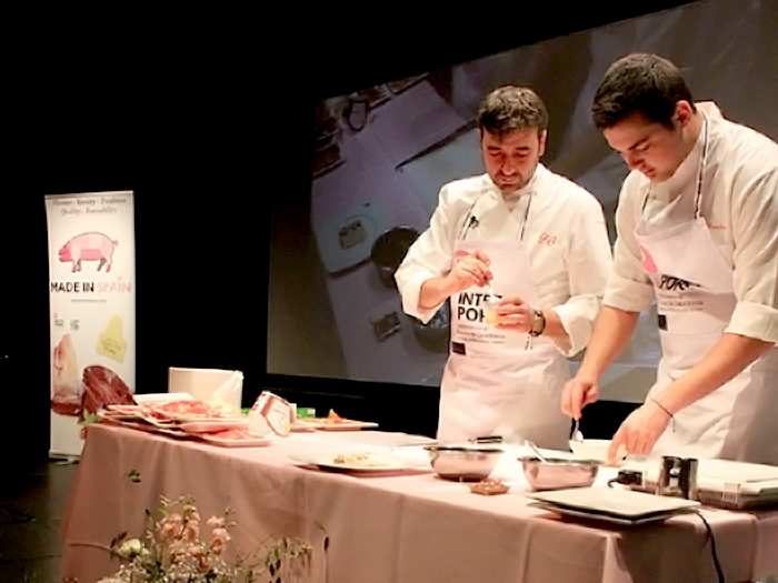 Tras el curso de corte, el cocinero español Fernando del Cerro, cuyo restaurante “Casa José” en Aranjuez cuenta con una Estrella Michelín, ofreció una demostración de tres platos cocinados con este producto cárnico: panceta, manos de cerdo y lacón.
