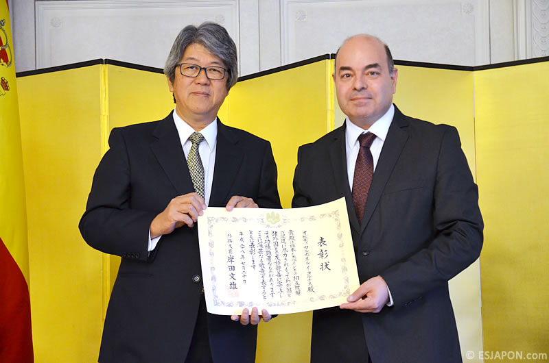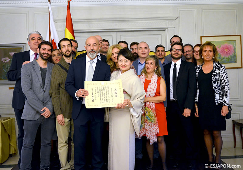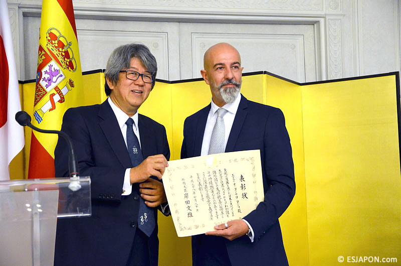 表彰式では、在スペイン日本国特命全権大使水上正史氏から各受賞者に対し表彰状と記念品が手渡され、式後はそれぞれの分野で二国間の友好親善に大きく貢献した受賞者を囲んで和やかな歓談が行われていた。