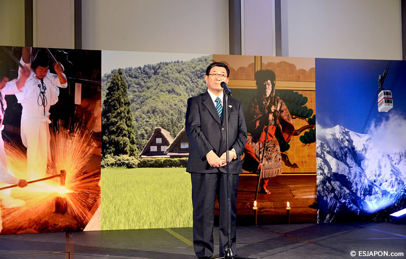 今回のレセプションには古田肇岐阜県知事、在スペイン日本国大使水上正史氏をはじめ、スペインの観光関係者他大勢の業界人が参加し、第8回全国和牛能力共進会にて日本一を獲得したブランド牛肉の「飛騨牛」の試食や数種類の地酒の試飲、また岐阜県の地歌舞伎の特別公演等を楽しんだ。