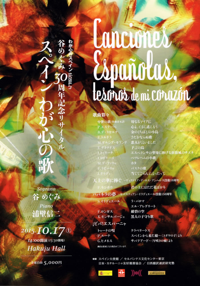 【終了】「スペイン・わが心の歌」谷めぐみ30周年記念リサイタル