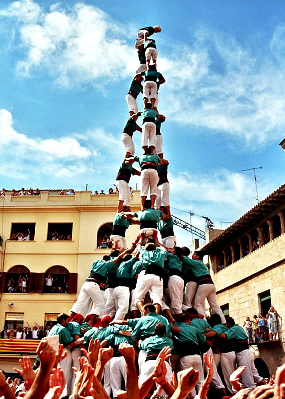 特に、最後の人間の塔は、約200年にわたりカタルーニャ地方で行われている行事ですが、写真にもありますように約600人前後の人間の塊で最高10段の塔を造るというものです。これには長期の厳しい訓練や忍耐を要しますが、これからも分かるようにカタルーニャ人の団結への意識は非常に高いと言えます。