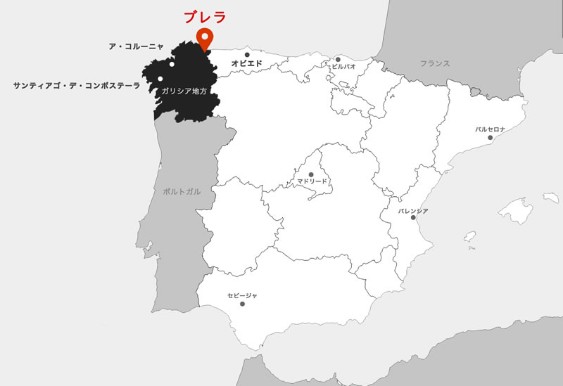 ガリシア地方はA Coruña(ア・コルーニャ)、Lugo(ルーゴ)、Ourense(オウレンセ)、Pontevedra(ポンテペドラ)の4つの県にわかれており、ブレラはLugo県にある海沿いの町です。