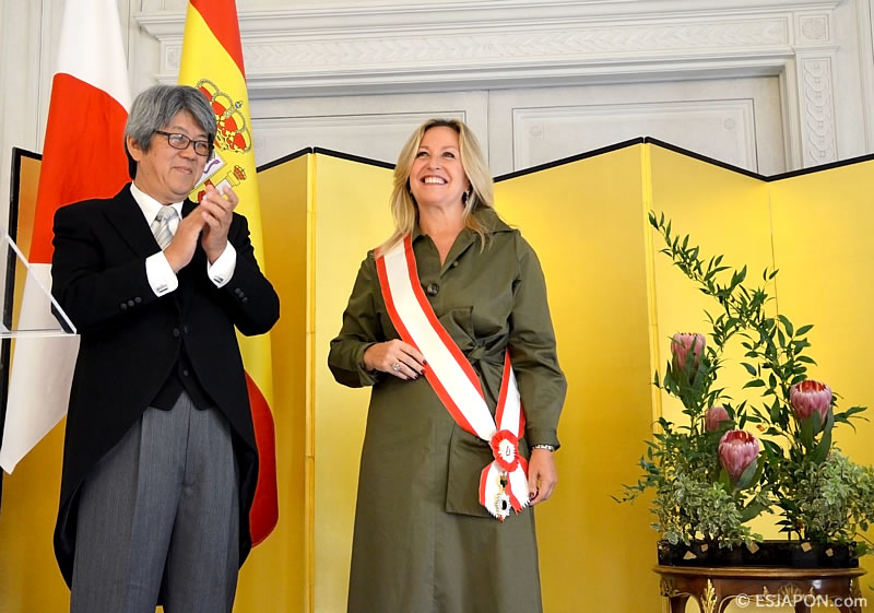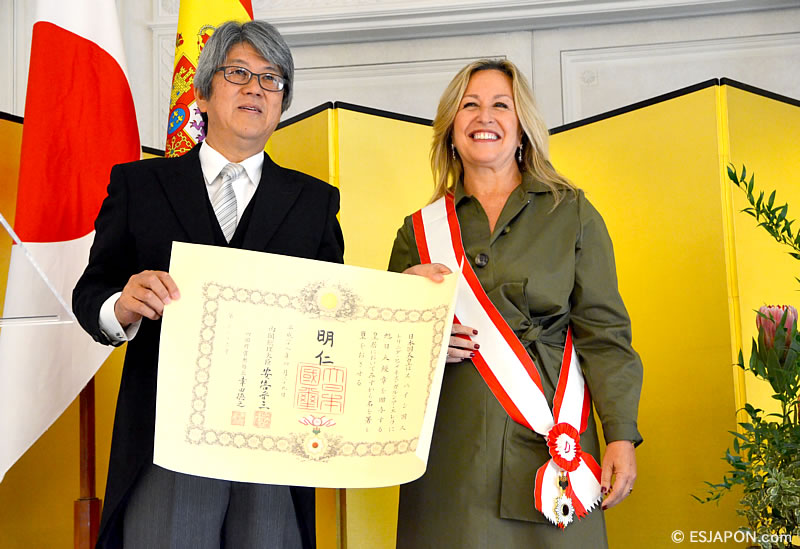 授章式は10月6日、マドリードの在スペイン日本大使公邸にて開催され、ホセ・ルイス・ロドリゲス・サパテロ元スペイン首相、ジョセプ・ピケ元産業大臣・外務大臣を含む招待客が列席する中、在スペイン日本国特命全権大使 水上正史氏より同章が手渡された。