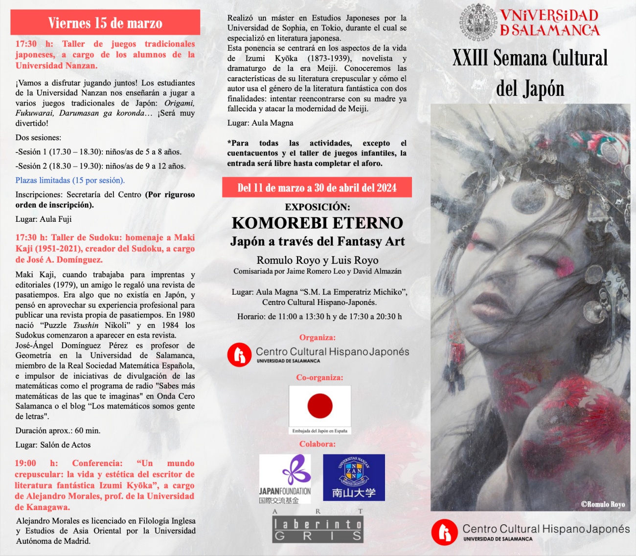 今年で23回目となる、サラマンカ大学日西文化センター (Centro Cultural Hispano-Japonés) 主催『日本文化週間』が、3月11日(月)から15日(金)まで、5日間に渡って開催される。