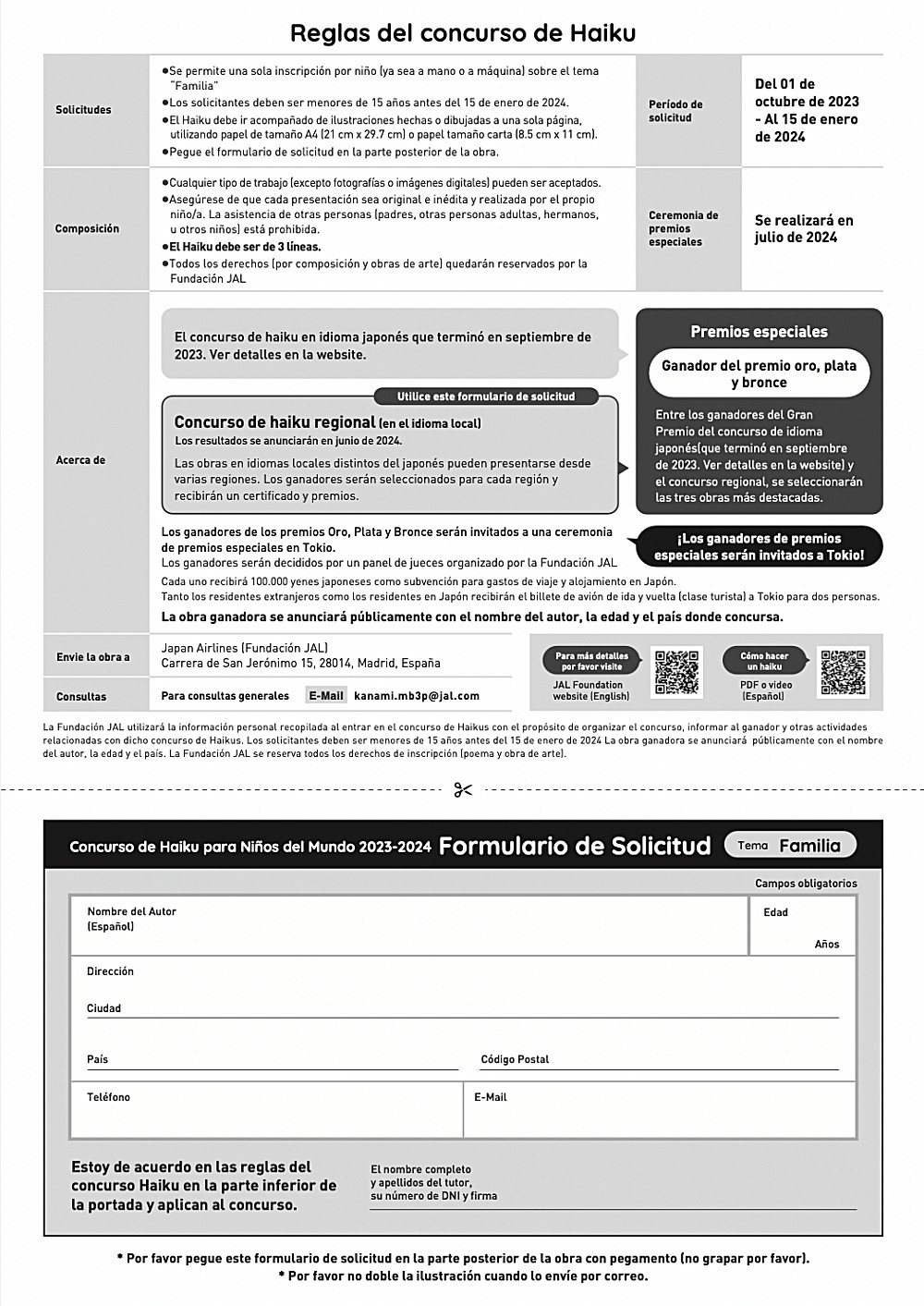 Actualmente, la Fundación JAL (Japan Airlines) está celebrando el “Concurso de Haiku para Niños del Mundo 2023-2024″ dirigido a los niños del mundo.