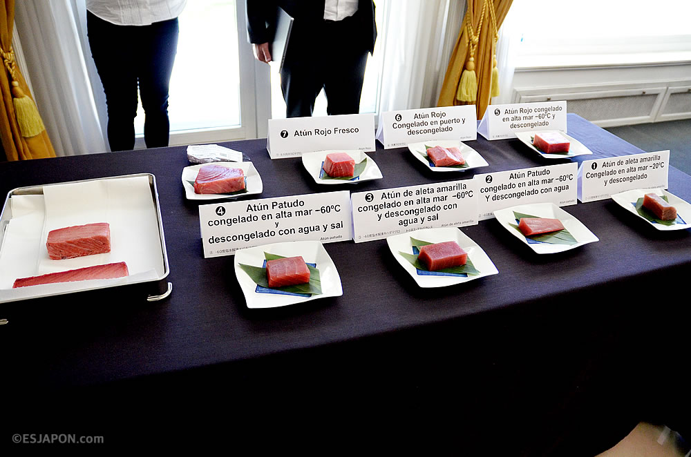 Durante el seminario, se explicó con detalle cómo la pesca japonesa de atún y su tecnología de congelación a -60 grados ofrecen una calidad superior en comparación con las prácticas de otros países. A través de una demostración práctica con ocho tipos distintos de atún, los asistentes pudieron comprobar de primera mano cómo influyen la temperatura de congelación, el método de descongelación y el estado del producto en el sabor, el color y la textura.