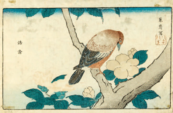 Kitao Masatoshi, Gavilán y camelia / Sparrowhawk and Camellia, 1790.