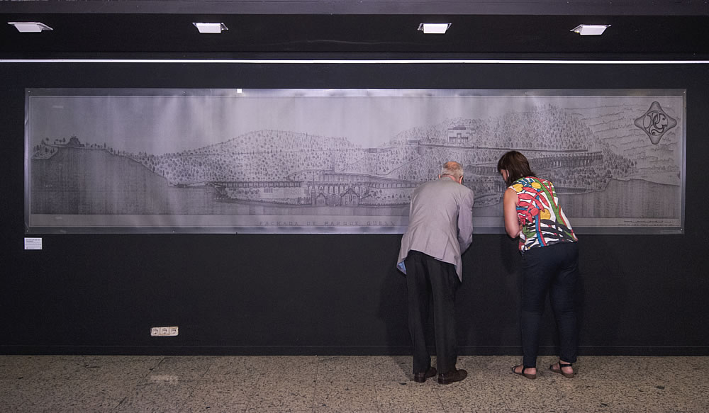 ガウディ自身さえ描く事がなかったこれらの実測図の中には、8年の年月をかけて完成されたグエル公園の全体立面図も存在する。