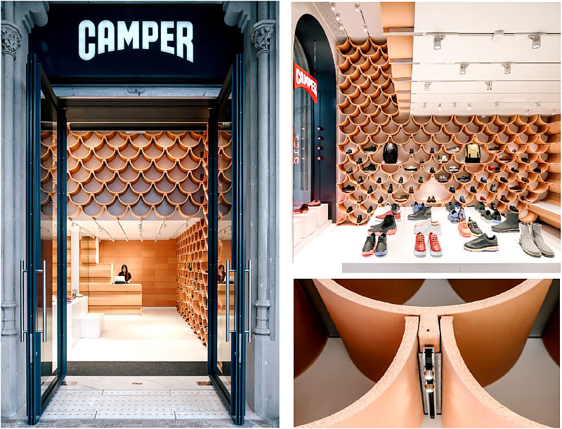 El primer proyecto Camper Together con Kengo Kuma fue creado en 2014 para la tienda Camper de Milán, en Via Montenapoleone. El proyecto se concibió partiendo de las necesidades de exposición de un zapato, que se multiplica hasta convertirse en una construcción compleja, otorgando una nueva dimensión al espacio.