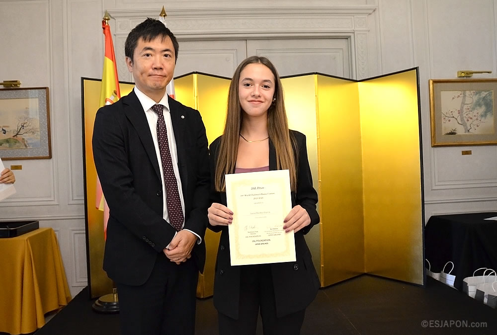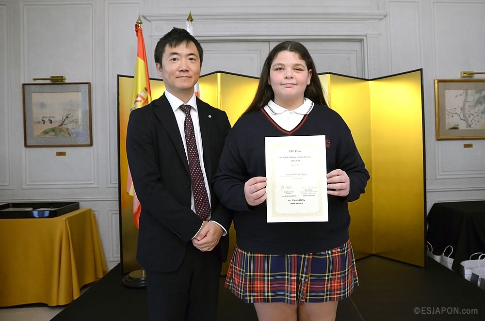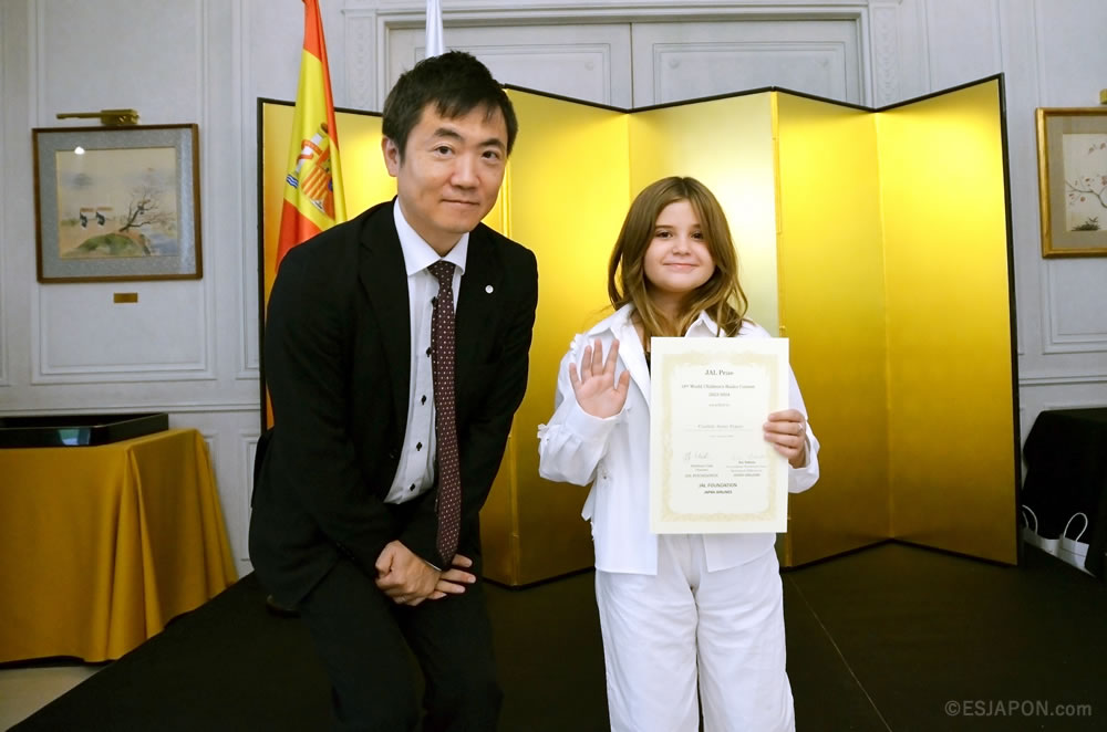 今回の俳句のテーマは「かぞく (Familia)」。スペイン国内の15歳以下の子どもたちから寄せられた1,200以上の多彩な作品の中から「大賞7句」と「入賞30句」が選出された。表彰式には、受賞した子どもたちとその家族が出席し、大賞受賞者には中前隆博大使から、入賞受賞者にはJALを代表して吉田径氏 (欧州・中東・アフリカ地区販売推進室長) より、それぞれ賞状が授与された。