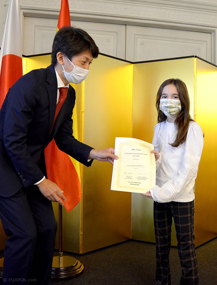公益財団法人JAL財団主催、日本航空協賛によって、世界中の15歳以下の子どもたちから応募された、「絵」と「俳句」からなる作品を対象とした『世界こどもハイクコンテスト 2021-2022 スペイン大会』の表彰式が、2022年10月14日に在スペイン日本大使公邸にて開催されました。