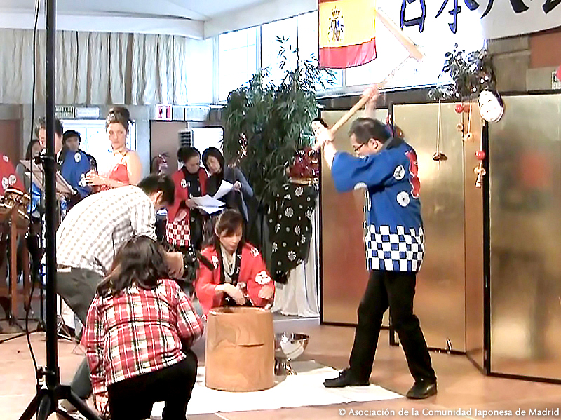 マドリード日本人会が主催する毎年恒例の新春もちつき大会。