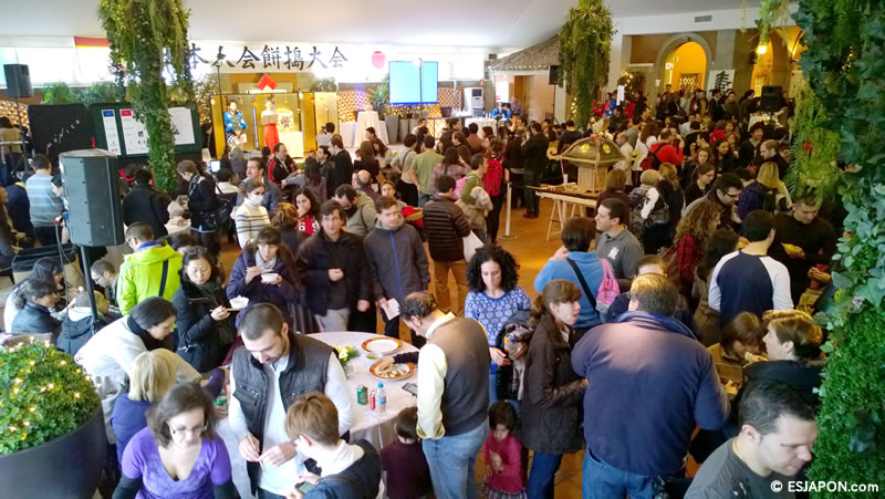 今回注目すべきは、もち米から作るつきたてのお餅。またマドリード市内の和食レストランのご協力により日本食が提供される他、習字、折り紙など、日本の伝統芸術のコーナーや、指圧コーナーも用意されている。