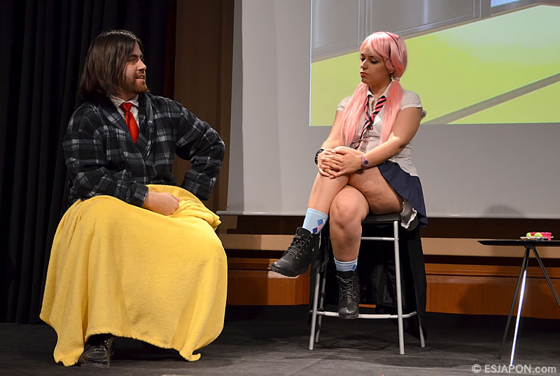 今回で2回目となるこのコンクールは、スペイン日本語教師会 (APJE) が中心となって運営され、ビデオ予選を通過した8校のチームが参加。今回のテーマは「〜を目指して」。上演時間10分を十分に使って各チームがオリジナル脚本による熱演を行い、その高い日本語能力と、凝った演出や演技により観客と審査委員団の拍手を浴びていた。