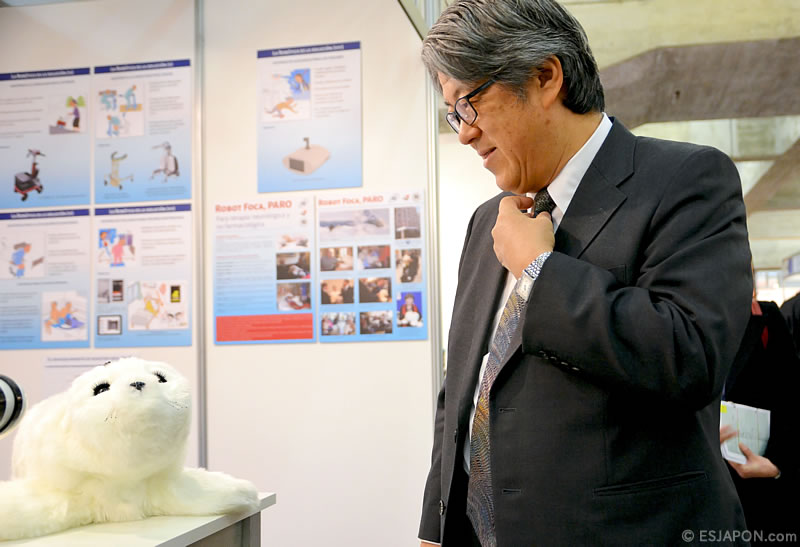 日本ブースで紹介されていたのは、昨年展示されたセラピー用アザラシ型ロボット『パロ』(スペイン語名Nuka) 、そして今年初展示となるサイバーダイン社のロボットスーツ『HAL®(ハル)』。