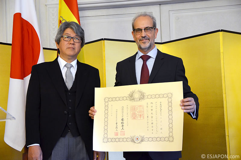 Orden del Sol naciente, Rayos Dorados con Escarapela, por su promoción del conocimiento de Japón en España.